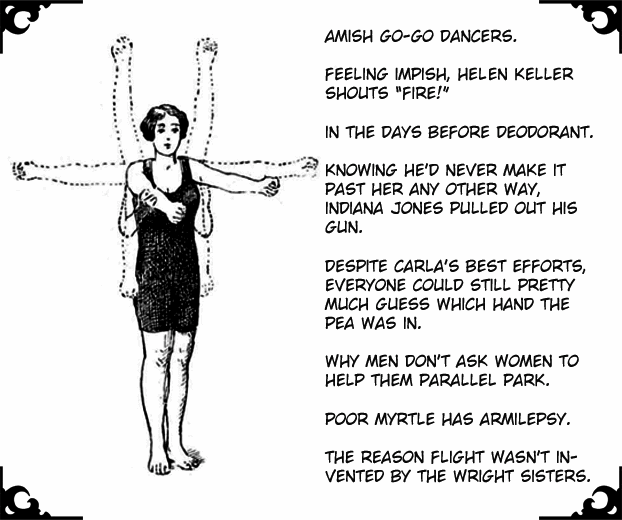 Around the same time, to keep my writing skills in practice I started taking odd pieces of old black & white clipart and adding multiple goofy captions. I called those cartoons (never published anywhere) "Earwigs" as a tribute to the nightmarish insects which are alleged to crawl into people's ears, burrow into their brains, and cause madness. Because that's the sort of thing I find funny.