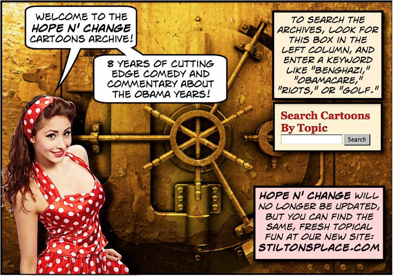 Looking back at 8 years of Hope n' Change, I'm proud of the fact that the cartoons and commentaries hold up as accurate and truthful. I'm proud of the fact that my vigorous opposition to Obama and the progressive agenda was never based on blind hatred, but on disagreement with actual policies and pronouncements. I genuinely gave this president a chance...but it didn't take him long to show himself wholly unworthy of his high office.