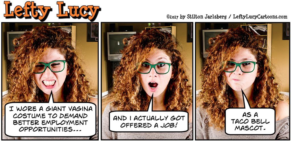 Some of you have voiced concern that Lefty Lucy may fall on hard times considering that she'll be losing her internship here at the Hope n' Change office tower and has no demonstrable job skills. Happily, something has already opened up for her...