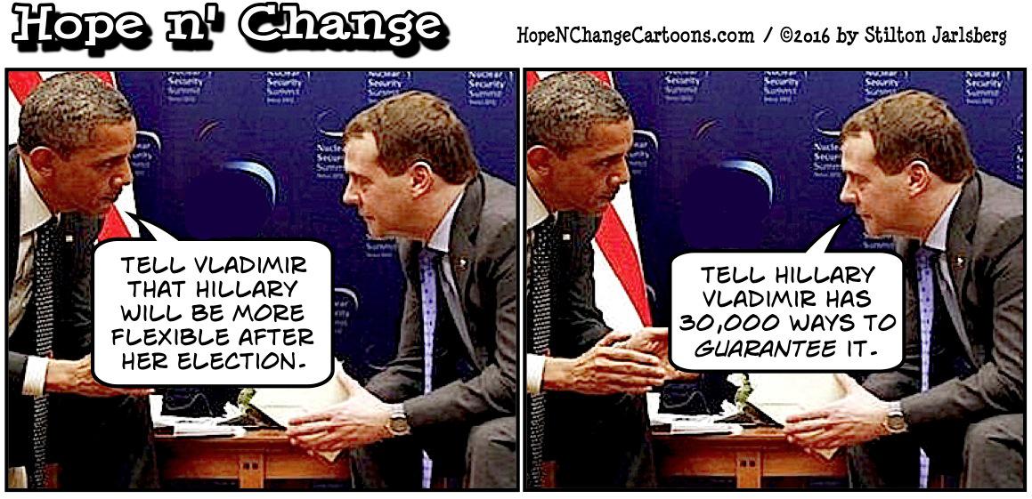 @Colby Muenster- The third cartoon actually means that Vlad grabbed the emails from Hillary's not-so-private server years ago under his own initiative. Regarding the "first woman nominated" claim, I notice that the Dems and their media toadies are now saying "the first woman nominated by a major party." Details, details.